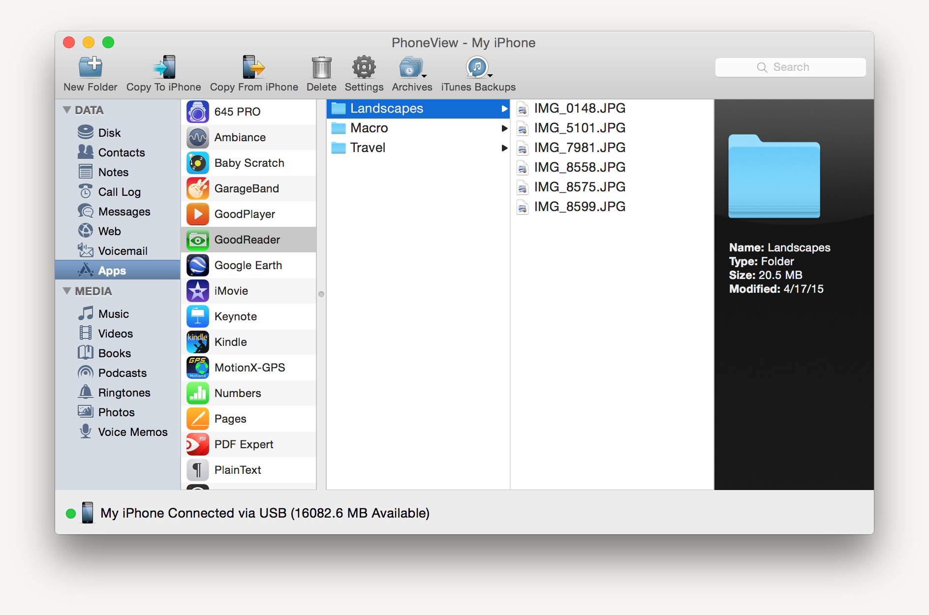 With PhoneView, you can view, save and print all of your iPhone and iPad messages, WhatsApp messages, voicemail and other data directly on your Mac.